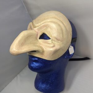 Handpainted paper mache with jewel and beaded fringe. Satin tie
