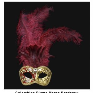 Columbina Mezza Bordeaux/Red Feathers, Imported Italian Mask