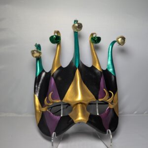 Hand painted leather with leather strip ties.