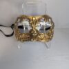 Handpainted paper mache mask with beaded fringe. Satin ribbon tie. Glamourous and chic