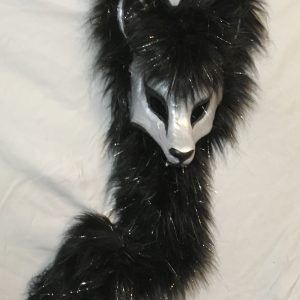 Handpainted paper mache mask with beaded fringe. Satin ribbon tie. Glamourous and chic