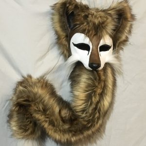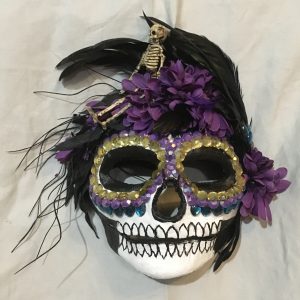 Handpainted paper mache mask with beaded fringe. Satin ribbon tie. Glamourous and chic