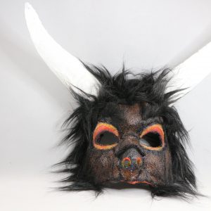 Handpainted paper mache mask with beaded fringe. Satin ribbon tie. Glamourous and chic